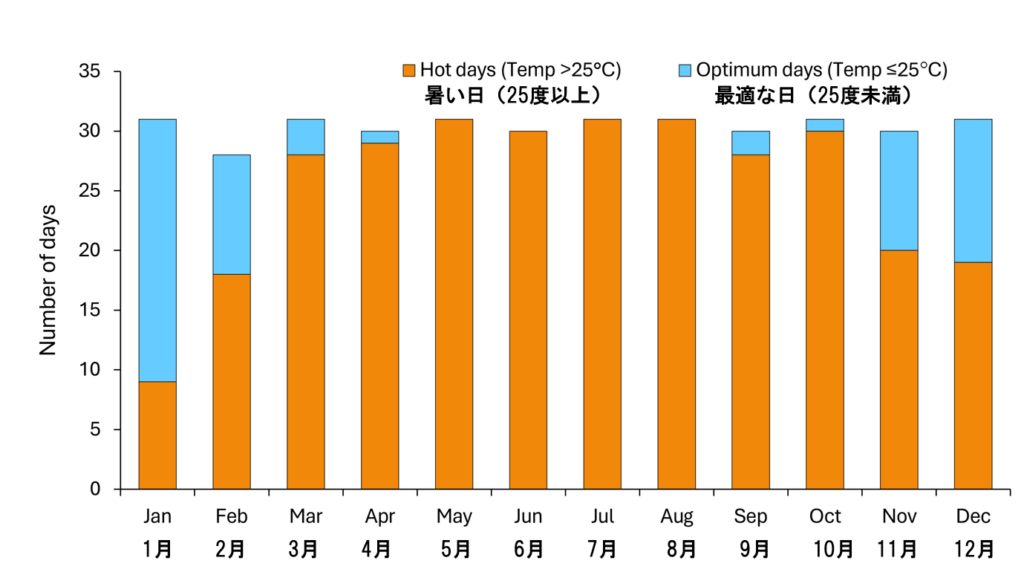 タイは4月から10月までの期間、25度以上の暑い日が続きます(図)。