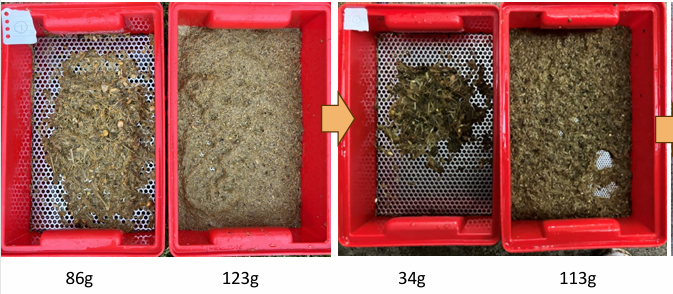 糞を洗うと変化が目で見えて面白いので、たくさん洗わせていただきました。消化効率が良くなればエネルギーが生まれ、乳量、乳質の効果が期待できます。